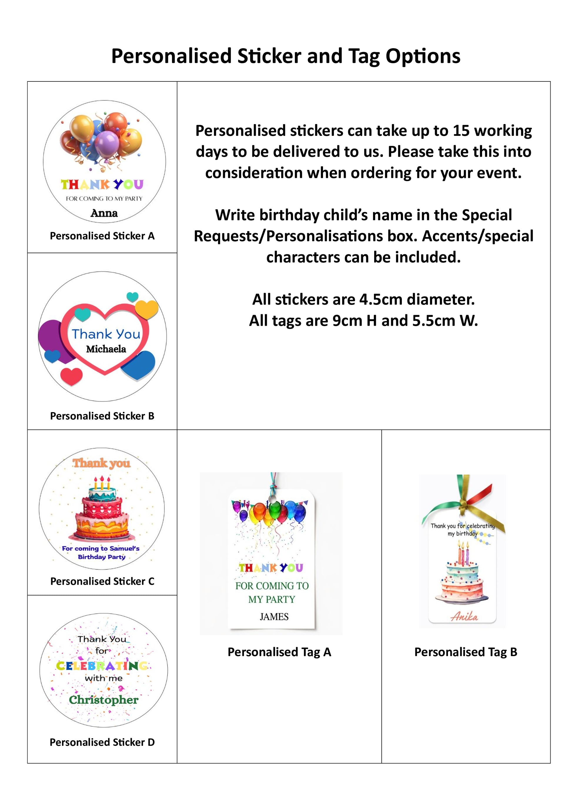 Different lollies can be used. Please contact us prior to ordering should you wish to substitute.